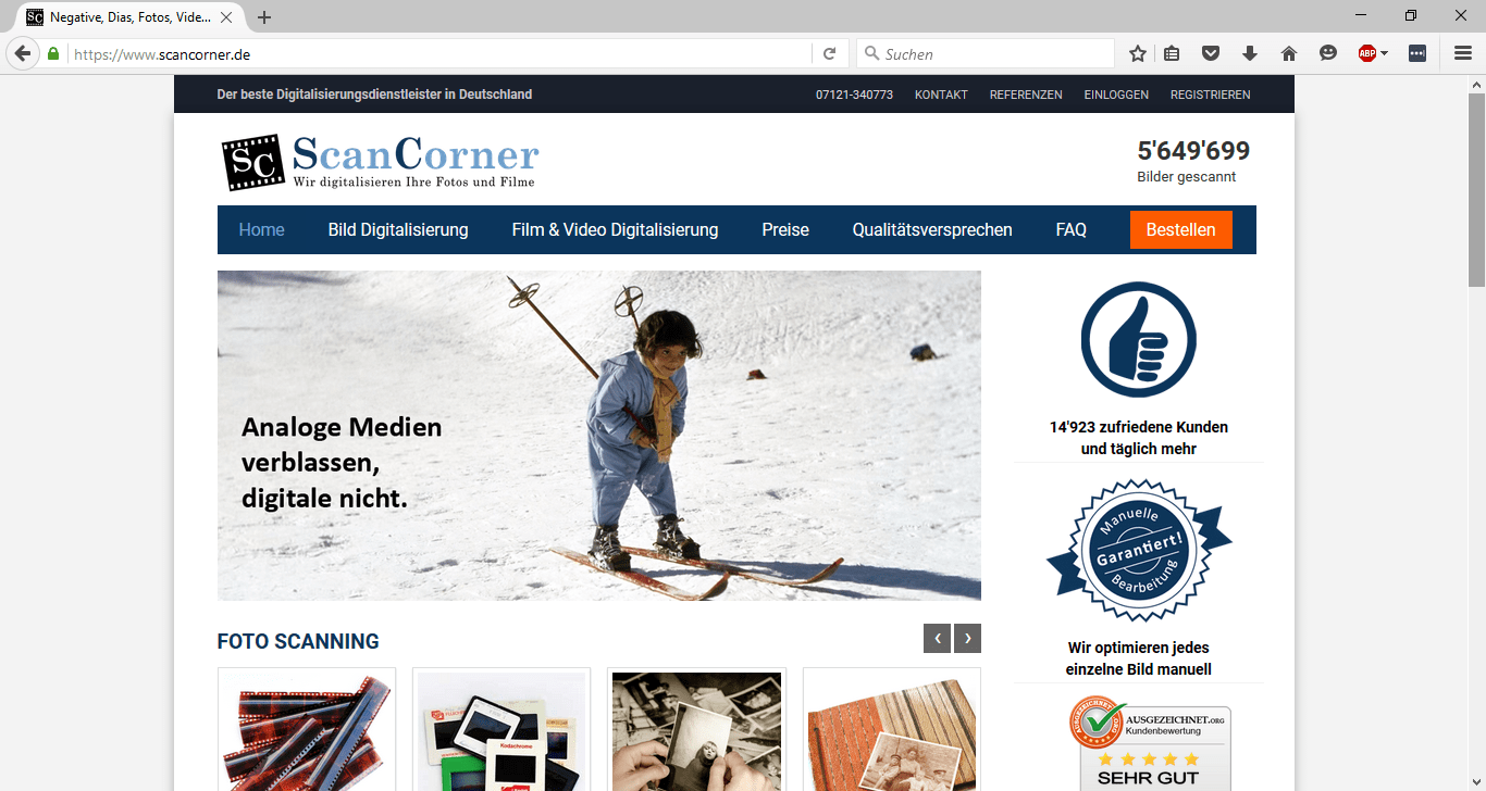 Für mich war der Service der Digitalisierung meiner kleinen Super8 Filmrolle gratis, aber ich hätte auch gerne dafür etwas bezahlt. Denn wenn man sich solche Filme aus alten Tagen anschauen kann, wird einem klar, dass man im Leben nur Erinnerungen sammeln kann und nichts anderes ansonsten bleibt. Der Service von ScanCorner ist transparent und umfassend. Die Kosten für eine Digitalisierung dieser Art (Super-8 ohne Ton) liegt bei € 0,99 pro Minute. Da mein Film mit etwas mehr als drei Minten recht kurz war, hätte die Digitalisierung also auch nicht so in Kontor geschlagen. Deshalb werde ich auch meine restlichen großen und kleinen Super8 Filmrollen sicherlich wieder bei ScanCorner Digitalisieren lassen. Mein einziger etwas negativer Punkt ist, dass die Auftragsbearbeitung für meine Begriffe sehr lange gedauert hat. Eingegangen ist die Filmrolle bereits im Juli 2017 und den fertigen Film habe ich Mitte September 2017 erhalten. Ich denke aber, dass es auch daran gelegen hat, dass es eben ein gratis Produkttest war und kein wirklicher Kundenauftrag. Deshalb ziehe ich bei meiner Bewertung nur einen haben Punkt ab.